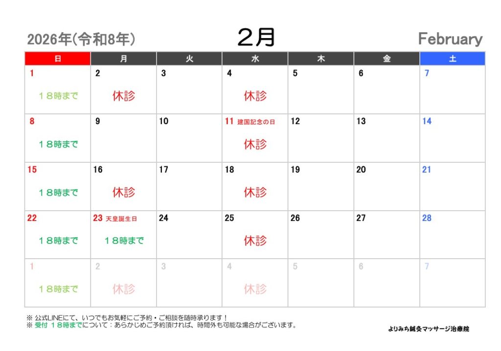2026年2月の月間予定表を掲載します!