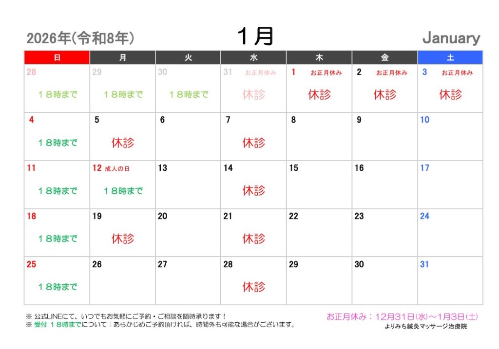 2026年1月の月間予定表を掲載します!